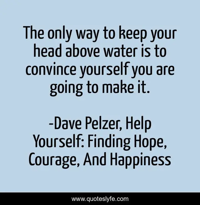 This page presents the quote "The only way to keep your head above water is to convince yourself you are going to make it.". Author of this quote is Dave Pelzer, Help Yourself: Finding Hope, Courage, And Happiness. This quote is about confidence, positive, motivational, optimistic, inspirational, enthusiasm,.