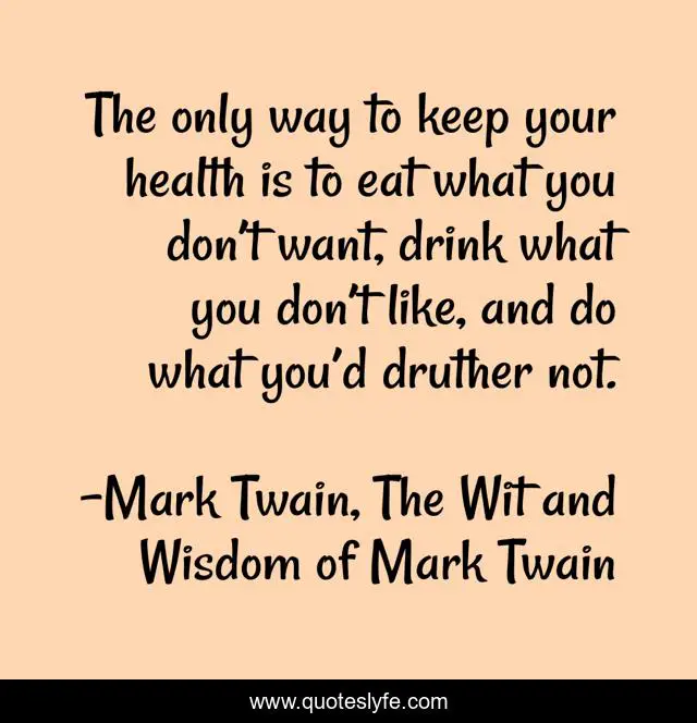 "Mark Twain, The Wit and Wisdom of Mark Twain Quotes." Quoteslyfe.com, 2025. Fri. 05 Dec. 2025. <https://www.quoteslyfe.com/quote/The-only-way-to-keep-your-health-177084>.