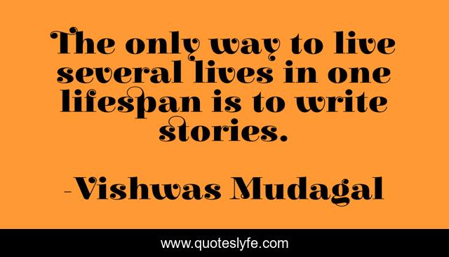 This page presents the quote "The only way to live several lives in one lifespan is to write stories.". Author of this quote is Vishwas Mudagal. .