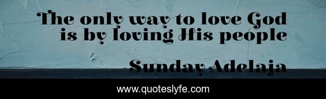 This page presents the quote "The only way to love God is by loving His people". Author of this quote is Sunday Adelaja. This quote is about kingdom, life, love, destiny, serving-god, people, money, god, work,.