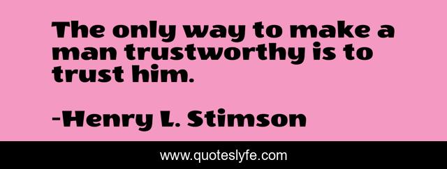 This page presents the quote "The only way to make a man trustworthy is to trust him.". Author of this quote is Henry L. Stimson. .