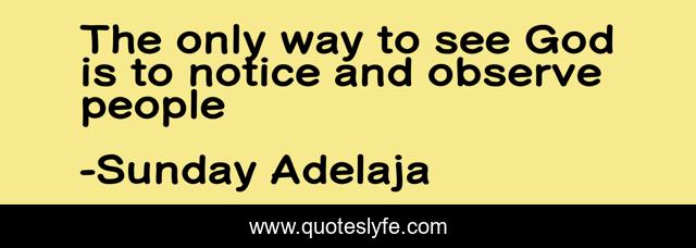 This page presents the quote "The only way to see God is to notice and observe people". Author of this quote is Sunday Adelaja. This quote is about kingdom, life, love, destiny, serving-god, people, money, god, work,.