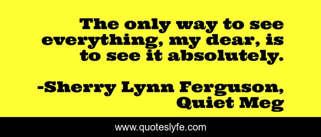 This page presents the quote "The only way to see everything, my dear, is to see it absolutely.". Author of this quote is Sherry Lynn Ferguson, Quiet Meg. This quote is about sweet, humourous, wise,.