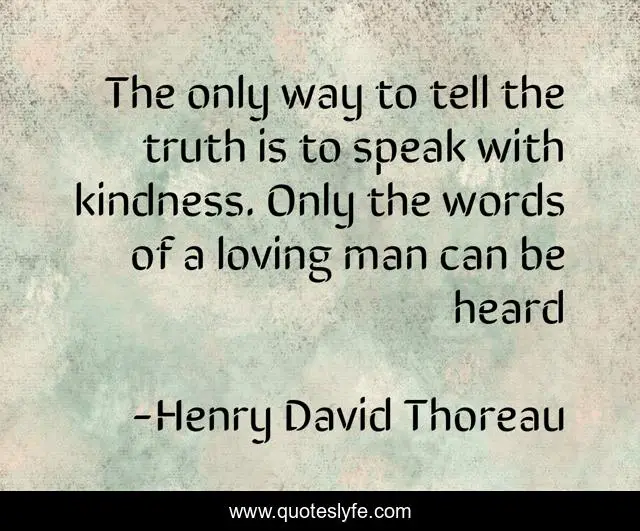 This page presents the quote "The only way to tell the truth is to speak with kindness. Only the words of a loving man can be heard". Author of this quote is Henry David Thoreau. This quote is about kindness, love, affection,.
