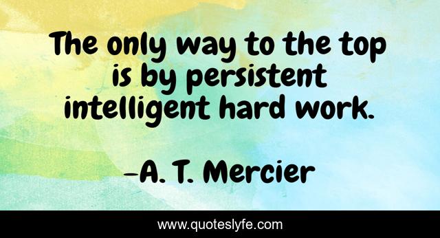 This page presents the quote "The only way to the top is by persistent intelligent hard work.". Author of this quote is A. T. Mercier. This quote is about , pressure, diamonds,.