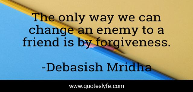 This page presents the quote "The only way we can change an enemy to a friend is by forgiveness.". Author of this quote is Debasish Mridha. This quote is about forgiveness, philosophy, debasish-mridha, quotes, inspirational, enthusiasm, friendship, debasish-mridha-m-d, enemies,.