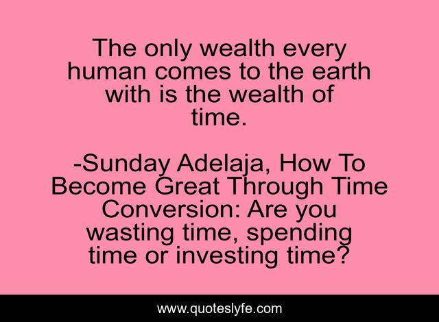 "Sunday Adelaja, How To Become Great Through Time Conversion: Are you wasting time, spending time or investing time? Quotes." Quoteslyfe.com, 2025. Sat. 06 Dec. 2025. <https://www.quoteslyfe.com/quote/The-only-wealth-every-human-comes-to-38977>.