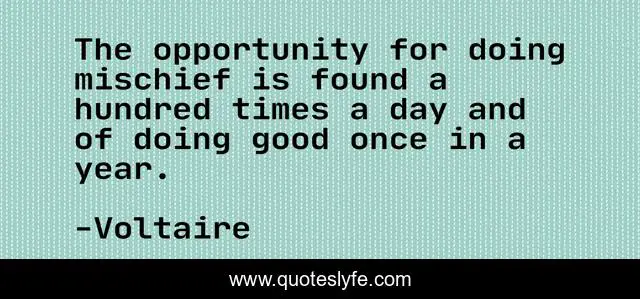 This page presents the quote "The opportunity for doing mischief is found a hundred times a day and of doing good once in a year.". Author of this quote is Voltaire. .
