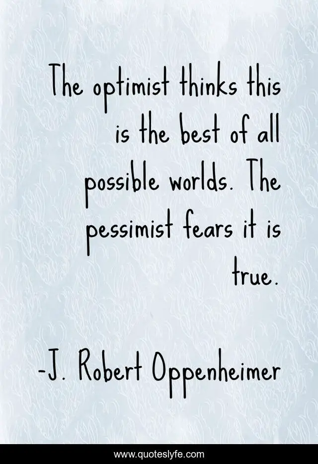 "J. Robert Oppenheimer Quotes." Quoteslyfe.com, 2025. Sat. 06 Dec. 2025. <https://www.quoteslyfe.com/quote/The-optimist-thinks-this-is-the-best-302943>.