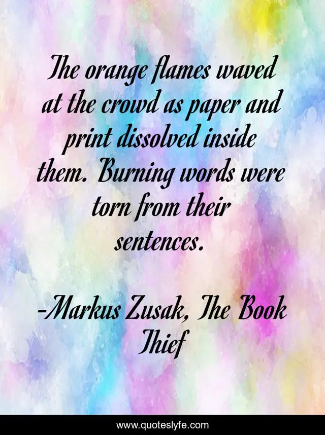 "Markus Zusak, The Book Thief Quotes." Quoteslyfe.com, 2025. Mon. 08 Dec. 2025. <https://www.quoteslyfe.com/quote/The-orange-flames-waved-at-the-crowd-112522>.