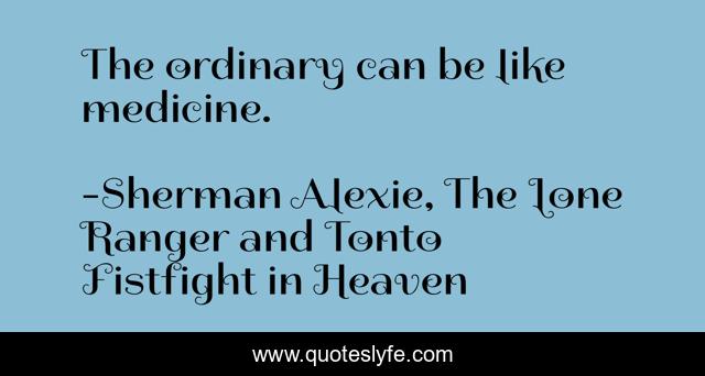 "Sherman Alexie, The Lone Ranger and Tonto Fistfight in Heaven Quotes." Quoteslyfe.com, 2025. Tue. 09 Dec. 2025. <https://www.quoteslyfe.com/quote/The-ordinary-can-be-like-medicine-9717>.