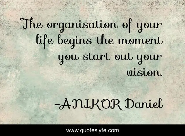 This page presents the quote "The organisation of your life begins the moment you start out your vision.". Author of this quote is ANIKOR Daniel. This quote is about positive, confidence, motivational, optimistic,.