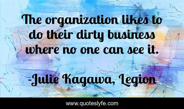 "Julie Kagawa, Legion Quotes." Quoteslyfe.com, 2025. Fri. 05 Dec. 2025. <https://www.quoteslyfe.com/quote/The-organization-likes-to-do-their-dirty-229651>.