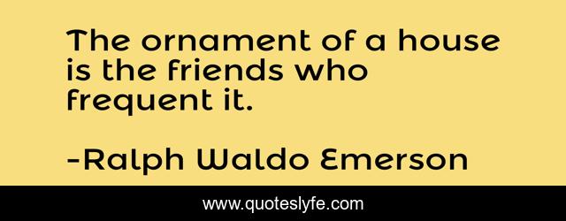 This page presents the quote "The ornament of a house is the friends who frequent it.". Author of this quote is Ralph Waldo Emerson. This quote is about decoration, house, homemaking, visitors, home, friends,.