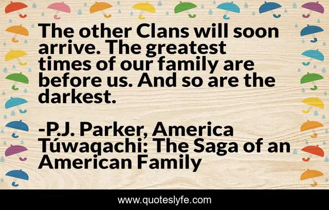 "P.J. Parker, America Túwaqachi: The Saga of an American Family Quotes." Quoteslyfe.com, 2025. Tue. 09 Dec. 2025. <https://www.quoteslyfe.com/quote/The-other-Clans-will-soon-arrive-The-148492>.