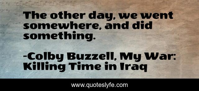 This page presents the quote "The other day, we went somewhere, and did something.". Author of this quote is Colby Buzzell, My War: Killing Time in Iraq. This quote is about humor, army, something, military, iraq, war,.