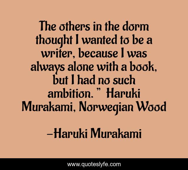 The others in the dorm thought I wanted to be a writer, because I was always alone with a book, but I had no such ambition. ”― Haruki Murakami, Norwegian Wood