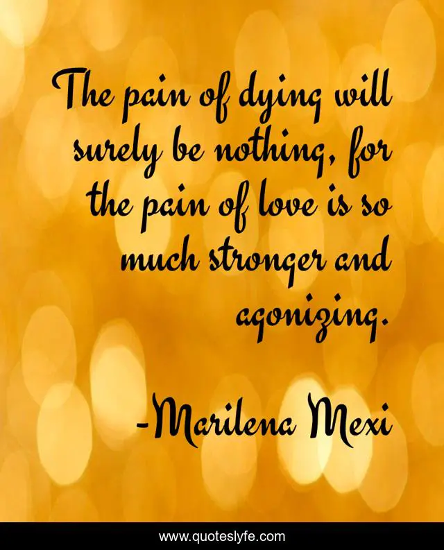 This page presents the quote "The pain of dying will surely be nothing, for the pain of love is so much stronger and agonizing.". Author of this quote is Marilena Mexi. This quote is about love, pain, affection,.