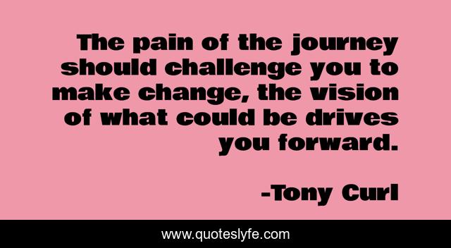 This page presents the quote "The pain of the journey should challenge you to make change, the vision of what could be drives you forward.". Author of this quote is Tony Curl. This quote is about life, strength, pain, motivation, journey,.