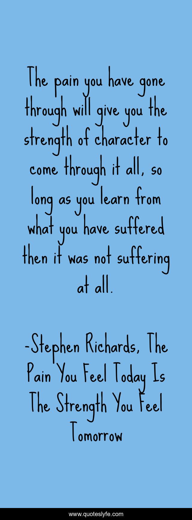 "Stephen Richards, The Pain You Feel Today Is The Strength You Feel Tomorrow Quotes." Quoteslyfe.com, 2025. Tue. 09 Dec. 2025. <https://www.quoteslyfe.com/quote/The-pain-you-have-gone-through-will-78336>.