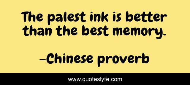 This page presents the quote "The palest ink is better than the best memory.". Author of this quote is Chinese proverb. .