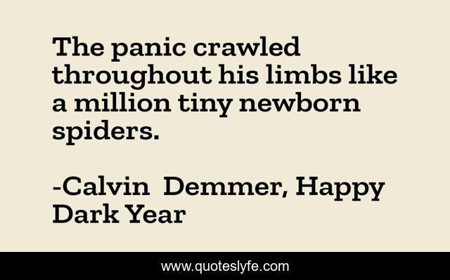 This page presents the quote "The panic crawled throughout his limbs like a million tiny newborn spiders.". Author of this quote is Calvin Demmer, Happy Dark Year. This quote is about fear, panic,.