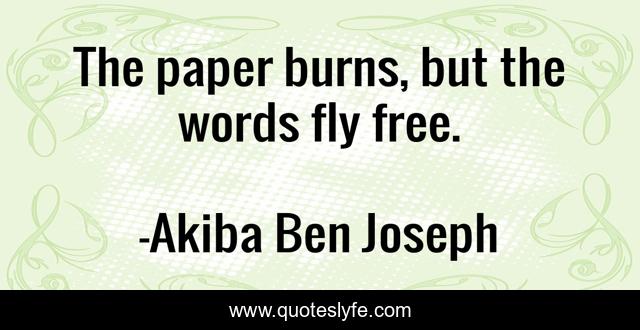 This page presents the quote "The paper burns, but the words fly free.". Author of this quote is Akiba Ben Joseph. This quote is about last-words, paper, words, burn,.