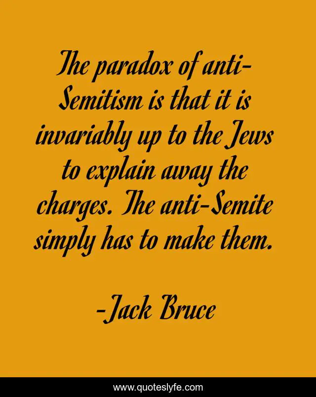 "Jack Bruce Quotes." Quoteslyfe.com, 2025. Fri. 05 Dec. 2025. <https://www.quoteslyfe.com/quote/The-paradox-of-anti-Semitism-is-that-200508>.