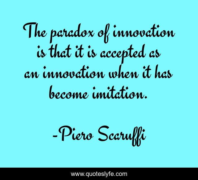 This page presents the quote "The paradox of innovation is that it is accepted as an innovation when it has become imitation.". Author of this quote is Piero Scaruffi. This quote is about creation, madness, innovation,.