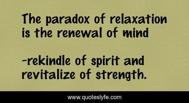 "rekindle of spirit and revitalize of strength. Quotes." Quoteslyfe.com, 2025. Sun. 07 Dec. 2025. <https://www.quoteslyfe.com/quote/The-paradox-of-relaxation-is-the-renewal-104482>.