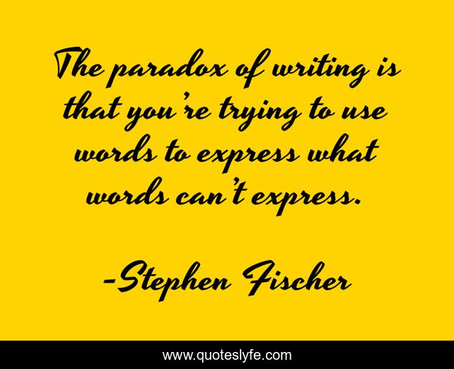 This page presents the quote "The paradox of writing is that you’re trying to use words to express what words can’t express.". Author of this quote is Stephen Fischer. .
