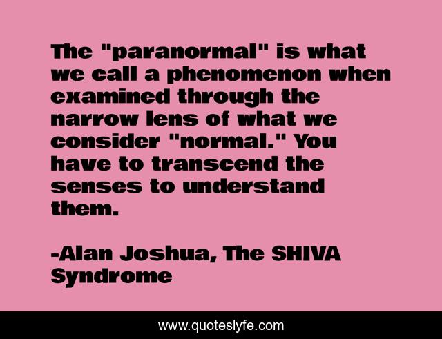 "Alan Joshua, The SHIVA Syndrome Quotes." Quoteslyfe.com, 2025. Fri. 05 Dec. 2025. <https://www.quoteslyfe.com/quote/The-paranormal-is-what-we-call-a-42140>.
