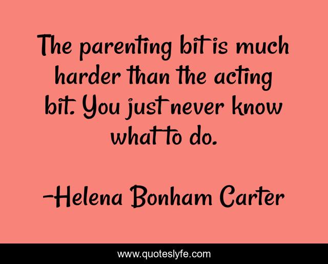 This page presents the quote "The parenting bit is much harder than the acting bit. You just never know what to do.". Author of this quote is Helena Bonham Carter. .