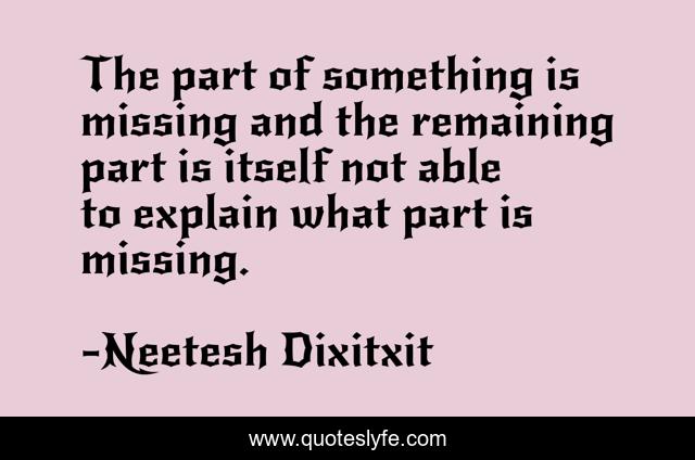"Neetesh Dixitxit Quotes." Quoteslyfe.com, 2025. Sat. 06 Dec. 2025. <https://www.quoteslyfe.com/quote/The-part-of-something-is-missing-and-50748>.