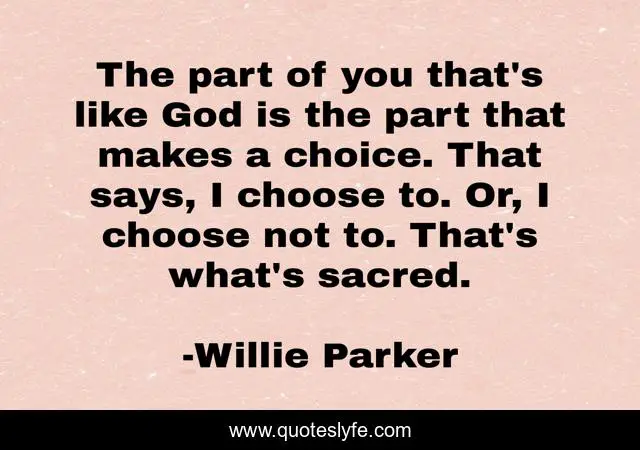 This page presents the quote "The part of you that's like God is the part that makes a choice. That says, I choose to. Or, I choose not to. That's what's sacred.". Author of this quote is Willie Parker. This quote is about abortion, women-s-rights, christianity,.