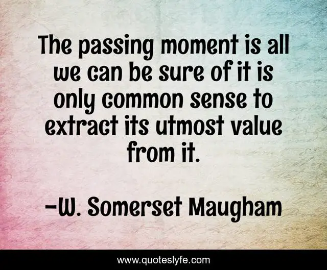"W. Somerset Maugham Quotes." Quoteslyfe.com, 2025. Fri. 05 Dec. 2025. <https://www.quoteslyfe.com/quote/The-passing-moment-is-all-we-can-277928>.