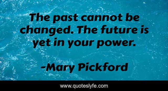 This page presents the quote "The past cannot be changed. The future is yet in your power.". Author of this quote is Mary Pickford. This quote is about enthusiasm, inspirational, truth,.