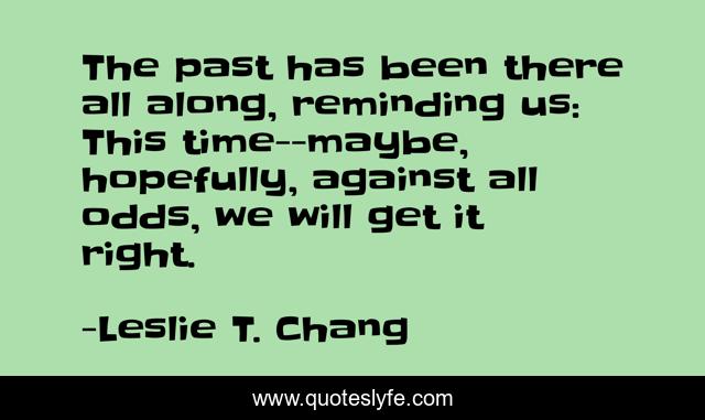 This page presents the quote "The past has been there all along, reminding us: This time--maybe, hopefully, against all odds, we will get it right.". Author of this quote is Leslie T. Chang. This quote is about enthusiasm, past-and-future, destiny, inspirational,.