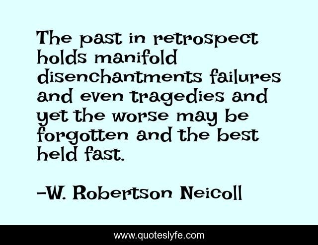 This page presents the quote "The past in retrospect holds manifold disenchantments failures and even tragedies and yet the worse may be forgotten and the best held fast.". Author of this quote is W. Robertson Neicoll. .