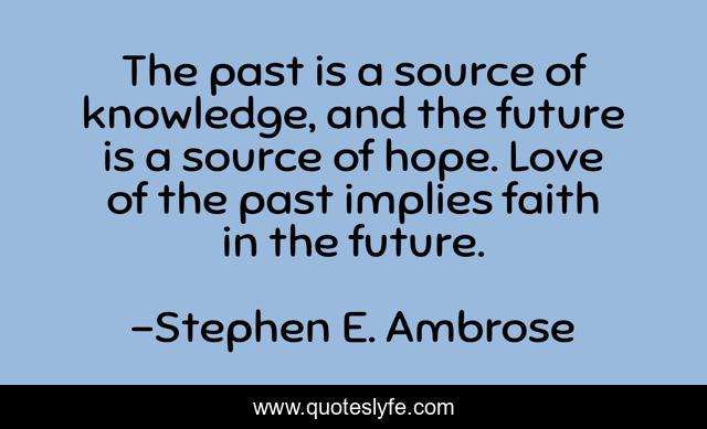 This page presents the quote "The past is a source of knowledge, and the future is a source of hope. Love of the past implies faith in the future.". Author of this quote is Stephen E. Ambrose. .