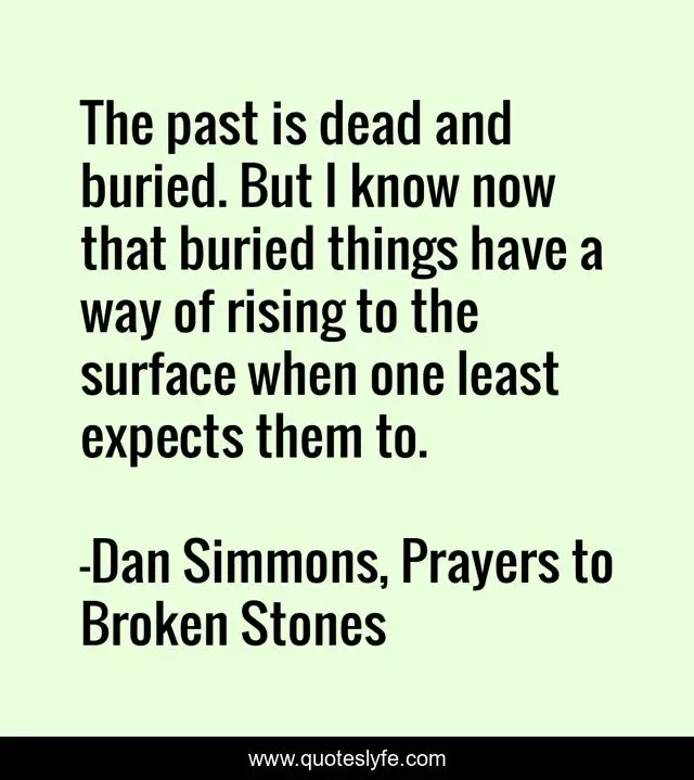 This page presents the quote "The past is dead and buried. But I know now that buried things have a way of rising to the surface when one least expects them to.". Author of this quote is Dan Simmons, Prayers to Broken Stones. This quote is about past, buried,.