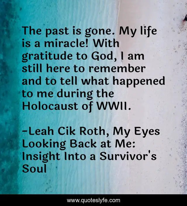 "Leah Cik Roth, My Eyes Looking Back at Me: Insight Into a Survivor's Soul Quotes." Quoteslyfe.com, 2025. Mon. 08 Dec. 2025. <https://www.quoteslyfe.com/quote/The-past-is-gone-My-life-is-199899>.