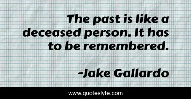 This page presents the quote "The past is like a deceased person. It has to be remembered.". Author of this quote is Jake Gallardo. .