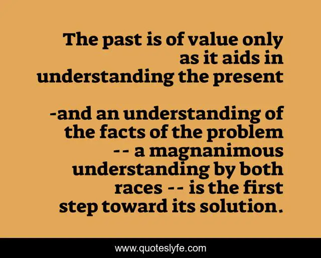 "and an understanding of the facts of the problem -- a magnanimous understanding by both races -- is the first step toward its solution. Quotes." Quoteslyfe.com, 2025. Fri. 05 Dec. 2025. <https://www.quoteslyfe.com/quote/The-past-is-of-value-only-as-224954>.