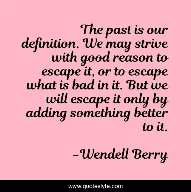 This page presents the quote "The past is our definition. We may strive with good reason to escape it, or to escape what is bad in it. But we will escape it only by adding something better to it.". Author of this quote is Wendell Berry. This quote is about past, better, escape,.