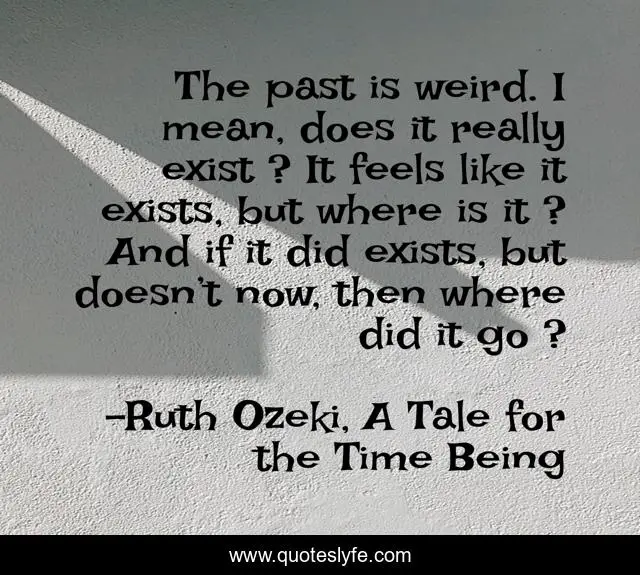 This page presents the quote "The past is weird. I mean, does it really exist ? It feels like it exists, but where is it ? And if it did exists, but doesn’t now, then where did it go ?". Author of this quote is Ruth Ozeki, A Tale for the Time Being. This quote is about past, time,.
