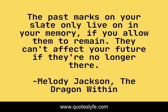 This page presents the quote "The past marks on your slate only live on in your memory, if you allow them to remain. They can't affect your future if they're no longer there.". Author of this quote is Melody Jackson, The Dragon Within. .