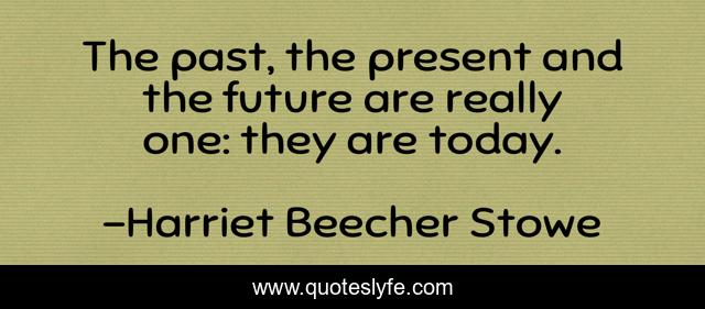 This page presents the quote "The past, the present and the future are really one: they are today.". Author of this quote is Harriet Beecher Stowe. This quote is about past, today, present,.