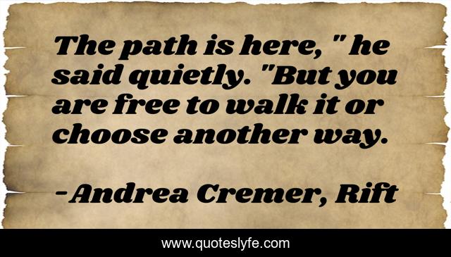 This page presents the quote "The path is here, " he said quietly. "But you are free to walk it or choose another way.". Author of this quote is Andrea Cremer, Rift. This quote is about rift, nightshade, young-adult, paranromal,.