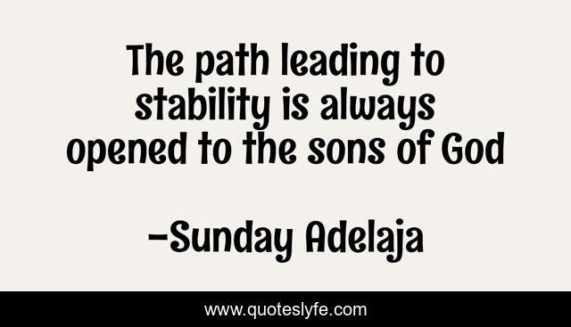 This page presents the quote "The path leading to stability is always opened to the sons of God". Author of this quote is Sunday Adelaja. This quote is about prosperity, money, opened, god, always, riches, stability, sons, leading,.
